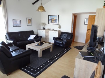 Das hochwertig ausgestattete und eingezäunte Ferienhaus hat eine Wohnfläche von ca.62 m2 und besteht aus zwei Schlafzimmern, einer ausgestatteten Küche mit Spülmaschine und einem Wohnzimmer mit Sitzgarnitur und Fernseher. Ein Schlafzimmer hat ein Doppelbett und das andere Schlafzimmer drei Einzelbetten (1 Hochbett), Kinderbett und Hochstuhl für Kleinkind sind vorhanden. An den Schlafzimmerfenstern sind Rolläden angebracht. Das Bad hat Dusche und WC. Terrassenmöbel und Liegen stehen zu ihrer Verfügung. Im Abstellraum finden Sie eine Waschmaschine.