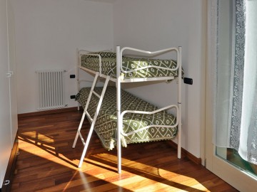 1 Schlafzimmer mit Doppelbett, eines mit Etagenbett. Zusätzlich kann ein weiteres Bett aufgestellt werden. Babybett ist vorhanden.
