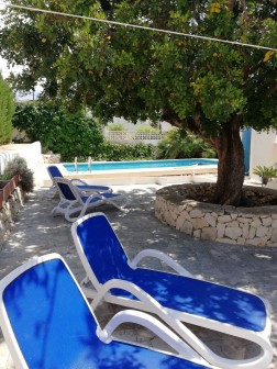 Der familienfreundliche Bungalow steht auf einer Anhöhe in ruhiger Umgebung. Er befindet sich auf einem ca. 700 qm großen eingefriedeten Grundstück in mediterranem Garten mit einem 4 x 8 m großen Pool und ist komplett abgeschlossen. Ihr PKW kann auf einem Stellplatz innerhalb des Grundstückes geparkt werden.