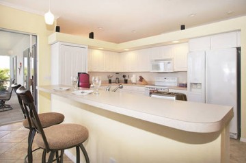 Die typisch amerikanische offene Küche mit Frühstücksbar und Frühstücksecke lädt zu einem
