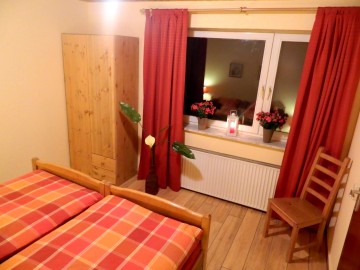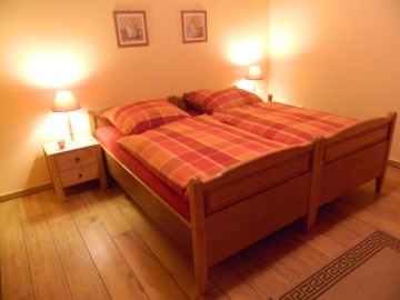 Es gibt zwei Schlafzimmer, eins mit Doppelbett (ein Kinderbett bis 3 Jahre kann zugestellt werden) und eins mit zwei Einzelbetten, Fernseher und Playstation2. Zudem haben Sie ein schönes Duschbad mit Fenster.Die große Einbauwohnküche ist mit Geschirrspüler, Gefrier- Kühlkombination, Backofen mit Ceranfeld, Microwelle, Waschmaschine und Trocker ausgestattet.