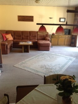 Das Ferienhaus verfügt über ein großes Wohnzimmer mit Wohnlandschaft, Schlafmöglichkeit für 2 Personen, eine Essecke, Massagestuhl, elektro Kamin, Wohnzimmerschrank und zusätzlichen Kleiderschrank. Vom Wohnzimmer kommt man direkt auf die Sonnenterrasse und in den Garten.