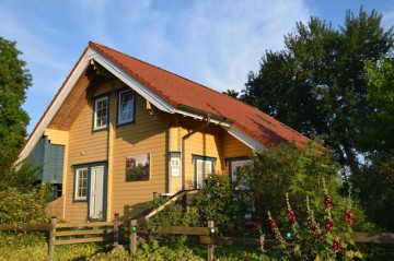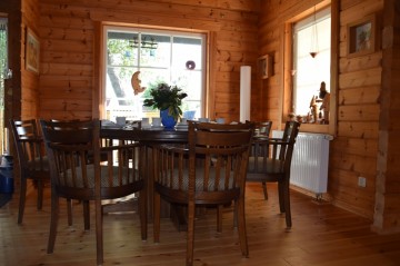 Das massive 2-geschossige finnische Vollholzhaus mit doppelschaligen Außenwänden (nordic-haus.de) hat eine Wohnfläche von 100 qm und ist somit eigentlich ein richtiges Wohnhaus. Gemütlich, warm und sehr persönlich eingerichtet bietet es bis zu 8 Personen Platz. Es gibt 3 Schlafzimmer, eines (im Erdgeschoss) mit Stapelbett, die andere zwei Schalfzimmer (im Obergeschoss), eine mit einem Doppelbett und das andere mit Stapelbett und Doppelbett.