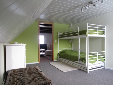 Schlafzimmer mit Doppelbett, Kinderzimmer mit Etagenbett und dritter Schlafmöglichkeit, Einzelzimmer, Schlafcouch in beiden Wohnzimmern