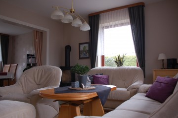 Gemütlich eingerichtetes Ferienhaus in ruhiger Lage. Im Erdgeschoss befinden sich die Küche und Wohnzimmer (32" Flach-TV, DVD, HIFI...) und 2 Schlafzimmer sowie ein Duschbad im Obergeschoss. Die Südterrasse ist vom Wohnzimmer aus begehbar.
