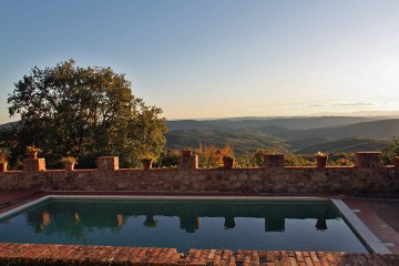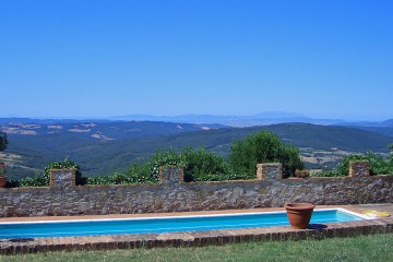Das Podere hat 2 Gebäude mit insgesamt 4 Schlafzimmern und bietet einen ungewöhnlich schönen Ort für Ihre Ferien in den Toskana. Der einstige Gutshof wurde liebevoll restauriert, im toskanischen Stil möbliert und mit modernen Annehmlichkeiten, wie z.B. 5 Badezimmern, komfortablen Küchen, Zentralheizung etc. sehr schön ergänzt. Viele Elemente der typischen Bauweise, wie Deckenbalken, Cottoboden, Kamin wurden erhalten und geben dem Anwesen eine unverwechselbare Atmosphäre. Das Eßzimmer und der Wohnraum sind mit Antquitäten, Kamin und passenden Kunstwerken sehr stimmungsvoll gestaltet. Die komfortable Küche ist ganz neu. Zum Haus gehören 4 Terrassen, so daß Sie jederzeit ein sonniges oder auch schattiges Plätzchen finden. Ein schöner mediterraner Garten gehört dazu. Am großzügige Poolbereich (10x5m-Pool) stehen den Gästen viele Liegen und 2 große Sonnenschirme zu Verfügung. Von hier und von den Terrassen aus haben Sie ein fantastischen Blick über die toskanische Landschaft bis zum Meer.