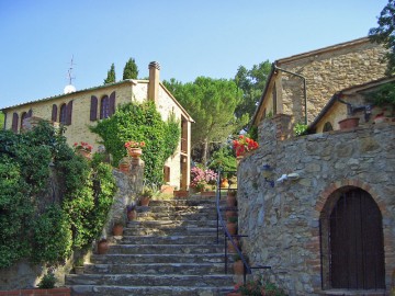 Das Haus ist ca. 1 km vom netten Ort Monterotondo und ca. 17km vom Massa Marittima entfernt auf einem Hügel inmitten der toskanischen Landschaft gelegen. Das große Grundstück liegt sehr ruhig und ist über eine kleine Straße zu erreichen. Geschäfte, Restaurants usw. gibt es in Monterotondo. Die Feldwege rundum sind für Jogger und Spaziergänger ideal. Zum Meer sind es 35km, ein Tagesausflug lohnt sich also. Schöne Ausflugsziele in der Umgebung sind auch Populonia, Siena und San Vicenzo. Die meisten Gäste allerdings genießen das Haus, den Pool, die großen Terrassen und das herrliche Grundstück. Ein wunderbarer Ort für entspannte Ferien!