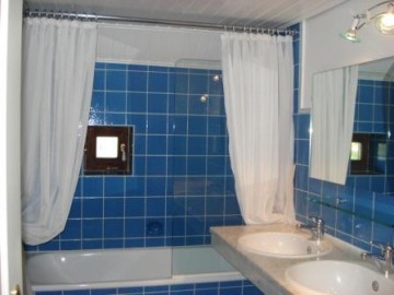 Im Haus befindet sich ein Badezimmer mit Dusch/Badewanne und 2 großen in Marmor eingefassten Waschbecken,