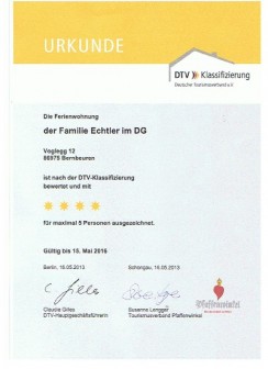 Unsere beiden Ferienwohnungen werden alle 3 Jahre vom DTV geprüft und mit 4 Sternen beurteilt