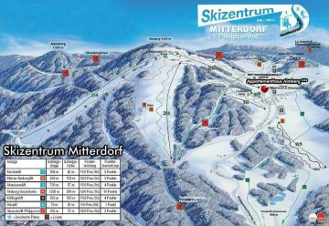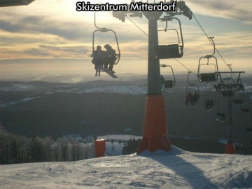 Unter dem Almberg befindet sich der Hauptverkehrsknotenpunkt von hiesigen Skipisten. Wenn Sie Glück am Wetter haben, können Sie das Alpenmassiv, der einen großen Teil von dem südlichen Horizont umsäumt, kaum übersehen. Nachdem Sie den Ausblick genossen haben, können Sie sich entscheiden, welchen Weg nach unten zu nehmen. Von dem Almberg aus kann man nach drei Himmelsrichtungen herunterfahren. Zur Wahl steht eine blaue Abfahrtstrecke, die so breit ist wie lang, dann eine blaue schmale Waldstrecke und der Angebotshöhepunkt bildet die rote Strecke Nummer 4 mit einem neuen Zweisessellift. Sowohl die Abfahrtsstrecke als auch der begleitende Zweisessellift sind ziemlich neu. Sie hat eine regelmäßige und gleichmäßige Form und anständige Breite. Der Vorrat am gut präparierten künstlichen Schnee funktioniert als eine Schneebasis und löscht reibungslos das Handicap der südlich orientierten Skipiste. Falls es gut bevölkert ist, könnte diese Piste auch den Racecarvers entgegen kommen. Die erwähnte blaue Skipiste ist gegenteilig für ruhiges Familienskifahren und anspruchloses Bogenabzirkeln gebaut. Ein Schnellskier kostet sie wahrscheinlich nur einmal und dann fängt er damit an, etwas „kräftigeres“ zu suchen. Dafür eine Familie mit Kindern darf auf ihr einen angenehmen Nachmittag genießen. Die andere blaue Piste führt den Skier durch den Wald hinaus zum nördlichen Teil des Berges, wo ein erleuchtetes Wieschen mit Skilift anknüpft. Der Lageplan zeigt, dass sich zum Areal noch eine Skipiste ordnet. Sie liegt unter dem Parkplatz und fährt den nördlichen Hang hinunter bis zum Talbächlein, das die Grenze zwischen der Tschechischen Republik und Bayern bildet. Obwohl die Piste nur von einem weniger bequemen Doppelschleppbügel bedient wird, es ist schwierig sich von ihr zu verabschieden. Die breite Slalompiste mit schärferem Mittelteil bietet einem guten Skier wohl alles, was man unter diesen Bedingungen suchen kann. Ihre Qualität wird durch eine gewöhnlich niedrige Anzahl von Personen gesteigert.