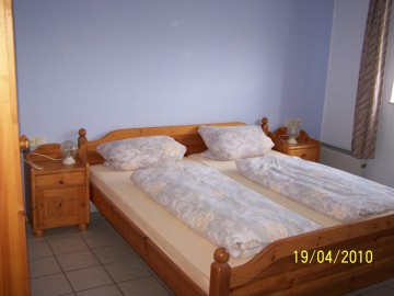 Ein Schlafzimmer mit Doppelbett, zwei Zimmer mit jeweils zwei Einzelbetten.