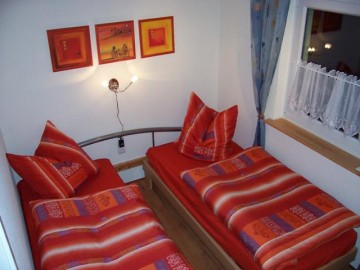 Im WZ befindet sich ein Gästebett/Schlafsofa 1,35m breite Liegefläche, im SZ 2 getrennt/zusammenstellbare Betten. 1 Schlafsessel kann zusätzlich aufgestellt werden.