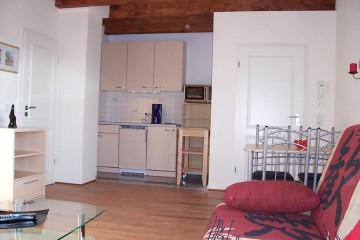 Die Wohnung ist 38 qm groß und besteht aus einem geräumigen Wohnzimmer mit Schlafcouch, einem geräumigen Badezimmer mit Waschmaschine/integriertem Wäschetrockner. Separates Schlafzimmer mit Doppelbett. Die Küchenzeile befindet sich im Wohnbereich. Die Wohnung ist komplett ausgestattet.