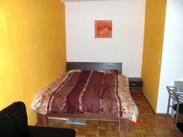 1-Zimmer Ferienwohnung (ca. 35 qm), im 4.OG (mit Aufzug), in einem gepflegten Berliner Hochhaus. Die Wohnung liegt hin zu einer neben Straße. Im Zimmer gibt es ein Bett (160 x 200) mit einem Nachttisch, ein Ledersofa mit Schlaffunktion (140 x 200) mit Couchtisch, ein Tisch mit 2 Stühlen, , einen LCD Fernseher mit einen SAT. Am Zimmer gibt es einen Balkon, wo z.b. geraucht werden kann. Kleiderschrank im Flur. Die Küche ist ausgestattet mit: 4-Ceranfelder Herd mit Backofen, Kühlschrank mit Gefrierfach, Kaffeemaschine, Wasserkocher, Geschirr, Töpfe etc. Das Bad (ohne Fenster) hat eine Dusche, Handwaschbecken, WC, Waschmachine. Es steht kostenfrei ein WLAN-DSL Internetanschluss zur Verfügung. Auch Küsche und Bad sind gefliest. Supermarkt ca. 500 m. Der nächste S+U Bahnhof ist „Innsbrucker Platz“, ca. 8 Gehminuten entfernt. Von hier aus sind es ca. 15 Fahrminuten zur Messe Berlin, KaDeWe, Gedächtniskirche und zum Zoologischen Garten. Kostenfreie, öffentliche Parkplätze in der Umgebung der Ferienwohnung. Der Gastgeber spricht Deutsch, Englisch, Spanisch, Arabisch und Französich.