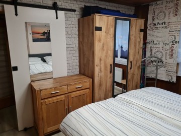 Doppelbett im Schlafzimmer , auch einzeln stellbar. Schlafsofa im Wohnzimmer