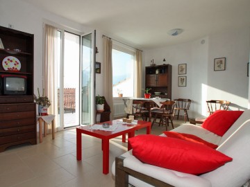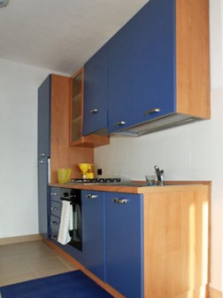 Diese Wohnung befindet sich im 2.OG. Sie hat auch 2 Schlafzimmer, im großen Wohnraum wurde eine nette, blaue Küchenzeile integriert. Diese Wohnung hat einen möblierten Balkon mit Seeblick.