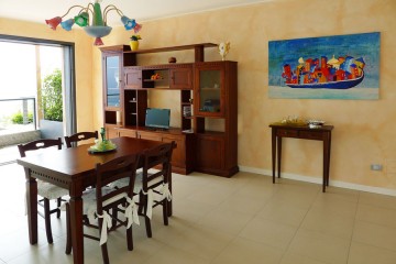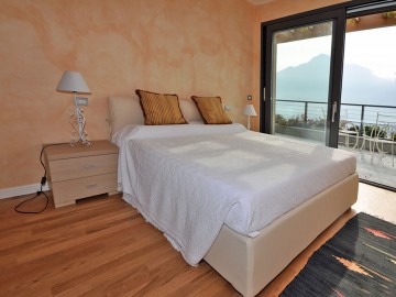 Luxuriöse Wohnung für 2-6 Personen mit 2 Schlafzimmern, einem großzügigen Wohnraum, einer integrierten Designerküche, einem hellen Bad sowie einer sehr großen Terrasse. Von allen Räumen haben Sie Zugang zum Garten und der Terrasse, die teilweise von Glyzinien beschattet wird. Die Einrichtung ist elegant. Die exquisite Atmosphäre wird durch Originalgemälde und originelle Dekoration sowie Lampen aus Murano unterstrichen. Von allen Räumen und vor allem auf der Terrasse haben Sie einen wunderschönen Seeblick, man kann sowohl weit nach Norden als auch nach Süden sehen. Der Garten zur Wohnung ist mediterran bepflanzt, ein Ort, an dem Entspannung leicht fällt.