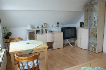 Die Wohnung befindet sich im Dachgeschoss (2. Stock) eines Zweifamilienhauses, welches in einer verkehrsberuhigten Straße (Einbahnstraße) gelegen ist.