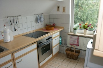 Das Wohnschlafzimmer ermöglicht einen schönen Blick über die Skyline von Cuxhaven. Neben einem Doppelbett befindet sich im Wohnzimmer noch eine kleine Schlafcouch und in der Diele eine weitere Schlafcouch für 2 Personen. Ein begehbarer Kleiderschrank bietet gute Möglichkeiten, die persönlichen Sachen unterzubringen. Im hellen Bad wurde eine großzügige Dusche neu installiert. Die separate Küche bietet eine Mikrowelle, Backofen mit 4 Platten Ceranfeld, Kühlschrank, Kaffeemaschine und vielen weiteren Küchengeräten und Zubehör an. Zwei Fahrräder können kostenlos mitgenutzt werden. Ferner ist die Nutzung des Gartens mit großer Rasenfläche, Terrasse und Grill möglich.