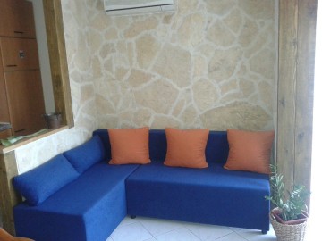 Ferienwohnung mit Meerblick in Zadar 50m2, mit Kueche und Wohn- Esszimmer, Schlafzimmer, grossem Bad mit Eckbadewanne und Balkon. Klimaanlage, TV mit SAT-Anlage. Schlafzimmer mit grossem Doppelbett und ihm Wohnbereich ausziehbare Schlafcouch. Bettwaesche ist in der Ferienwohnung vorhanden.