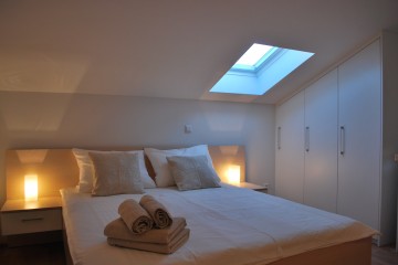 Die Wohnung hat drei Schlafzimmer, alle Schlafzimmer sind groß und hell. Zwei Zimmer verfügen über ein eigenes Bad mit Dusche, Mini-Küche und SAT LCD Fernseh. Drittes Zimmer hat ein Wellness Bad mit Ausgang zur Dachterrasse (16m2) mit indirektem Meerblick