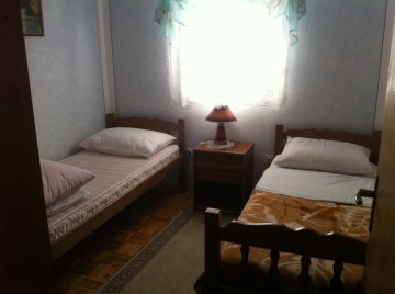 1 Doppelbett + 2 Einzelbetten ( jeweils getrennte Räume ) + im Wohnzimmer Schlafcouch