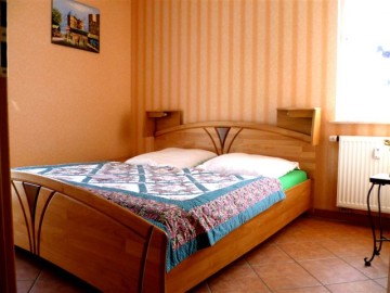 Im Schlafzimmer befindet sich ein großes Doppelbett 1,80m x 2,00m, im Wohnbereich eine Schlafcouch 1,60mx 2,00m