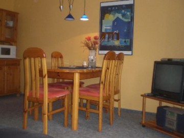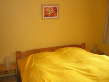 Es ist eine schöne helle Ferienwohnung (52qm) im Erdgeschoss einer ruhigen Ferienwohnungsanlage im Reihenhausstil. Sie bietet Platz für 4 Personen und verfügt über einen Wohn-Essraum mit Schlafsofa für 2 Personen, Fernseher und Stereo-Anlage, 1 Schlafzimmer mit Doppelbett, Küchenzeile mit Spüle, E-Herd mit 4 Platten, Kühlschrank mit Gefrierfach und Mikrowelle, sowie ein Duschbad. Sehr gerne können Sie auch unser Solarium nutzen. Ein PKW-Stellplatz befindet sich neben dem Haus.