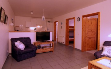 Wohnraum mit Fernseher, Radio und Telefon. Waschmaschine und Solarium können gegen Gebühr genutzt werden. Sämtliche Spielgeräte und Kinderfahrzeuge zur kostenlosen Nutzung(Bergketkar, Tischtennis, Kicker, Badminton Netzt auf dem Hof fest instaliert, großes Trampolin, Rutsche, Schaukel, Sandkasten usw.