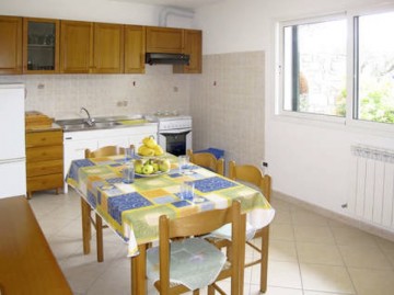 Separater Eingang über die Terrasse. Geräumige Küche (4 Flammen-Gasherd, Gefrierschrank, Kaffeemaschine, Toaster). 2 Schlafzimmer: Doppelzimmer, Zweibettzimmer (kein Außenfenster). Kleines Badezimmer mit Dusche/WC und Waschmaschine (kein Außenfenster). Kleiner Sat-TV mit deutschen Programmen, Radio. Fliesenböden. Keine Heizmöglichkeit. Haustiere nicht erlaubt.