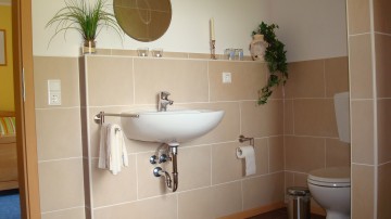 Geräumiges Badezimmer mit großzügiger Dusche und WC
