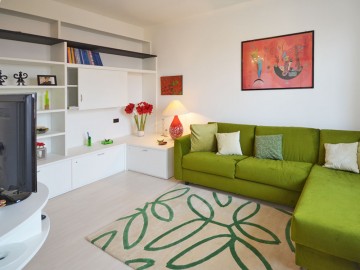 Das Appartment Milano befindet sich in einem gepflegten Appartmenthaus (6. Etage mit Lift) mitten in Mailand. Das gemütlich eingerichtete Appartment hat ein Wohn-/ Schlafzimmer mit komfortabler Schlafcouch für 1-2- Personen sowie Eßtisch und TV, ein Schlafzimmer mit Doppelbett, ein neues Duschbad sowie eine separate Küche. Dazu kommt ein Balkon mit Blick über Mailand. Durch die exponierte Lage ganz oben hat man von allen Räumen eine tollen Blick. Die Küche ist sehr gut ausgestattet , es ist alles wichtige (Geschirrspüler, Backofen, Kühlschrank) vorhanden. Die Einrichtung hat ein Innenarchitekt gestaltet, alles ist neu, gepflegt und geschmackvoll. Die Wohnung hat Zentralheizung. Nach einer anstrengenden Shoppingtour kommt man gern hierher zurück und genießt auf dem Balkon ein Glas Wein mit Blick über die Stadt.