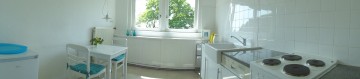 Die Ferienwohnung befindet sich in einem denkmalgeschützten Resthof im ersten OG. Sie ist riesige 160 qm groß und hat hohe helle Räume, bietet Platz für 4 bis 10 Personen. Die Zimmer sind 2008 frisch renoviert und modern eingerichtet. Hier haben Kinder viel Platz zum Spielen.