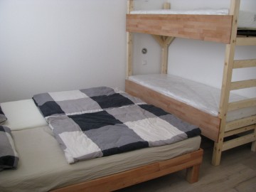 ein Doppelbett, ein Etagenbett