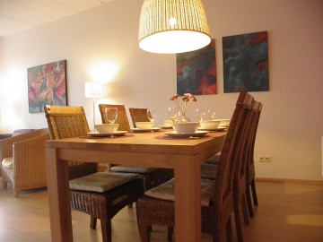 Wir bieten Ihnen für einen entspannten Urlaub eine ebenerdige komfortable Ferienwohnung, die sich durch eine qualitativ hochwertige & moderne Ausstattung auszeichnet. Sie ist sehr schön eingerichtet. Die Wohnung hat 1 Schlafzimmer mit einem Doppelbett + Babybett (steht zur Verfügung) und 1 Schlafzimmer mit einem Hochbett und einem Einzelbett. Großzügiger lichtdurchfluteter Wohn- Essraum, Flat-TV 42 Zoll, DVD-Player, Stereoanlage, DVD, CD, Spiele für Groß und Klein und diverse Bücher vorhanden. Die moderne Küche lädt zum Kochen ein! Das große helle Bad besitzt eine begehbare Dusche und eine Badewanne. Es wird im Januar 2012 komplett modernisiert und seniorengerecht angepasst! Die große, teil überdachte Terrasse mit Gartenmöbeln und einem unverbauten Blick in die Natür oder den Deich lädt zur Entspannung nach dem Strandspaziergang ein. Ein Glas Wein in der Natur! Genuss pur!