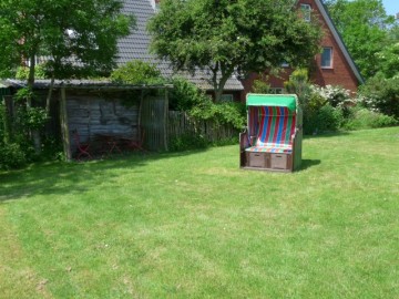 Liegewiese mit Strandkorb und Sonnenterrasse stehen zur Verfügung.