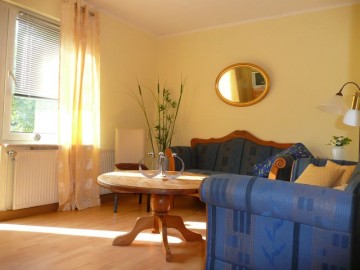 Das Wohnzimmer ist sehr gemütlich eingerichtet. Im Sommer kann man auf dem kleinen Balkon zur Südseite ausspannen. Natürlich ist ein TV im Wohnzimmer,-und ein DVD Player vorhanden. Unser Highlight: mit kostenlosem W-LAN!