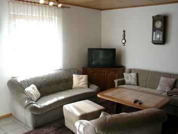 Wohnzimmer mit Schlafcouch für 1 Person; Kaminofen; Sat-TV; Stereoanlage und kostenloses W-Lan.