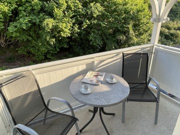 Die Wohnung besteht aus Wohn-/ Eßzimmer (ca. 20 qm) mit Schlafcouch, einem Schlafzimmer (ca. 17 qm) mit kleiner Leseecke , separater Küche sowie Bad mit Dusche und einem überdachtem (Süd-) Balkon.