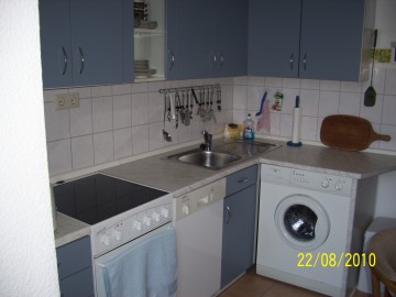 1 Küche mit Ceranherd, Backofen, Kühl-Gefrierkombination, Waschmaschine, Geschirrspüler, Mikrowelle
