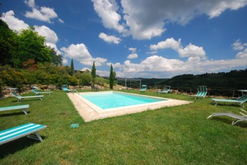 Zur Verfügung der Gäste: Swimmingpool in Panoramalage (5m x x10m, Tiefe: 0,90m - 1,60m; geöffnet vom 01.05 - 30.09) mit Tischen, Stühlen, Liegestühlen , Sonnenschirmen, WC, Minibar, Internetanschluss an der Rezeption (¤2,00/Std.), 4 Fahrräder (¤10,00/Tag), Grill, SAT-TV, Kinderstuhl und Kinderbett (gratis), Feuerholz für den Kamin (¤5,00/Korb). Direkt neben dem Grundstück ist eine Osteria, die sowohl Frühstück als auch Abendessen anbietet. Halbpension auf Anfrage. Überdachter Parkplatz auf dem Gelände.