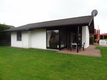 Das hochwertig ausgestattete und eingezäunte Ferienhaus hat eine Wohnfläche von ca.62 m2 und besteht aus zwei Schlafzimmern, einer ausgestatteten Küche mit Spülmaschine und einem Wohnzimmer mit Sitzgarnitur und Fernseher. Ein Schlafzimmer hat ein Doppelbett und das andere Schlafzimmer drei Einzelbetten (1 Hochbett), Kinderbett und Hochstuhl für Kleinkind sind vorhanden. An den Schlafzimmerfenstern sind Rolläden angebracht. Das Bad hat Dusche und WC. Terrassenmöbel und Liegen stehen zu ihrer Verfügung. Im Abstellraum finden Sie eine Waschmaschine.