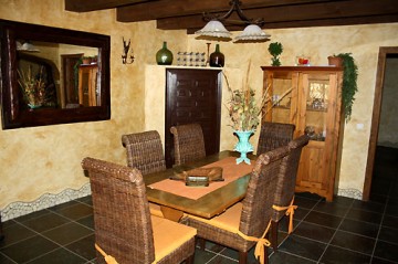Die sehr geräumige Finca Ortiz bietet Platz für 6 Personen und hebt sich durch seine hochwertige und sehr geschmackvolle Inneneinrichtung hervor. Die Finca, welche mit vielen Details liebevoll verziehrt wurde, ist neu erbaut, alle Einrichtungsgegenstaende sind also neu. Die Finca ist in 2 Etagen unterteilt, im unteren Stockwerk finden Sie das geräumige Wohn- und Esszimmer mit offenem Kamin und deutschem SAT TV, die sehr gut ausgestattete Küche, ein Schlafzimmer mit Doppelbett und En-suit Badezimmer mit Dusche sowie ein weiteres Badezimmer mit Dusche. Über einen Treppenaufgang gelangt man in das obere Stockwert, zunaechst auf eine kleine Galerie und weiter zu zwei Schlafzimmern mit jeweils 2 Einzelbetten, hier finden Sie ein weiteres Badezimmmer.