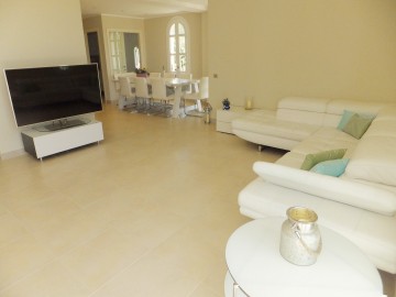 Im Erdgeschoss befinden sich: Ein offener moderner Wohnbereich mit Ausgang zur Terrasse und Garten mit integriertem Essbereich - Eine separate mit moderner Technik komplett ausgestattete Küche - 1 Bad mit Dusche/ WC/ Bidet.