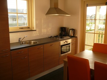 Erdgeschoss: Eingang mit separater Toilette, Abstellraum, großes l-förmiges Wohnzimmer und eine komplett eingerichtete (mit u.a. Geschirrspülmaschine, Kühlschrank, Gefriertruhe, Kombi-Mikrowelle) halb offene Küche mit Esstisch und Küchenveranda. Türen zur großen Veranda und zur kleinen Küchenveranda. 1. Etage: drei Doppelschlafzimmer, Badezimmer mit Waschbecken, Dusche, Sauna und Toilette. Zu dem Haus gehören zwei Abstellplätze hinzu. Selbstverständlich verfügt das Haus auch über Gartenmöbel, einen Fernseher, Radio, CD-DVD-Spieler und zahlreiche Gesellschaftsspiele.