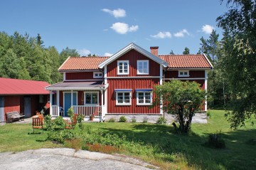Der Sandweg vom Haus führt zum schilfumsäumten Angel- und Badesee hinunter. Sie können stundenlang auf engen Pfaden wandeln, ohne auf eine Straße zu stoßen, vorbei an einzeln gelegenen Ferienhäusern im typisch schwedischen Traumhausstil - en liten röd stuga.