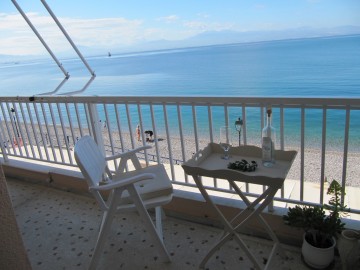 Es gibt vorne einen Balkon mit einer mit einer sehr netten Sicht auf den Korinthinischen Golf und den Korinthinischen Kanal, sowie die Berge rundherum und natürlich auch den Langen Loutraki Strand, wo Sie auch schwimmen können. Wenn Sie gerne den Sonnenuntergang sehen, so haben Sie in Griechenland die Möglichkeit einen der schönsten zu bestaunen. Die Wohnung ist mit Klimaanlage und elektrischen Rollläden ausgestattet, um vor der Sonne und Nachmittagshitze zu schützen. Die Balkontüren sind mit Doppelglasscheiben versehen, um gegen Lärm und Hitze zu isolieren. Eine Internetverbindung steht gratis zur Verfügung.